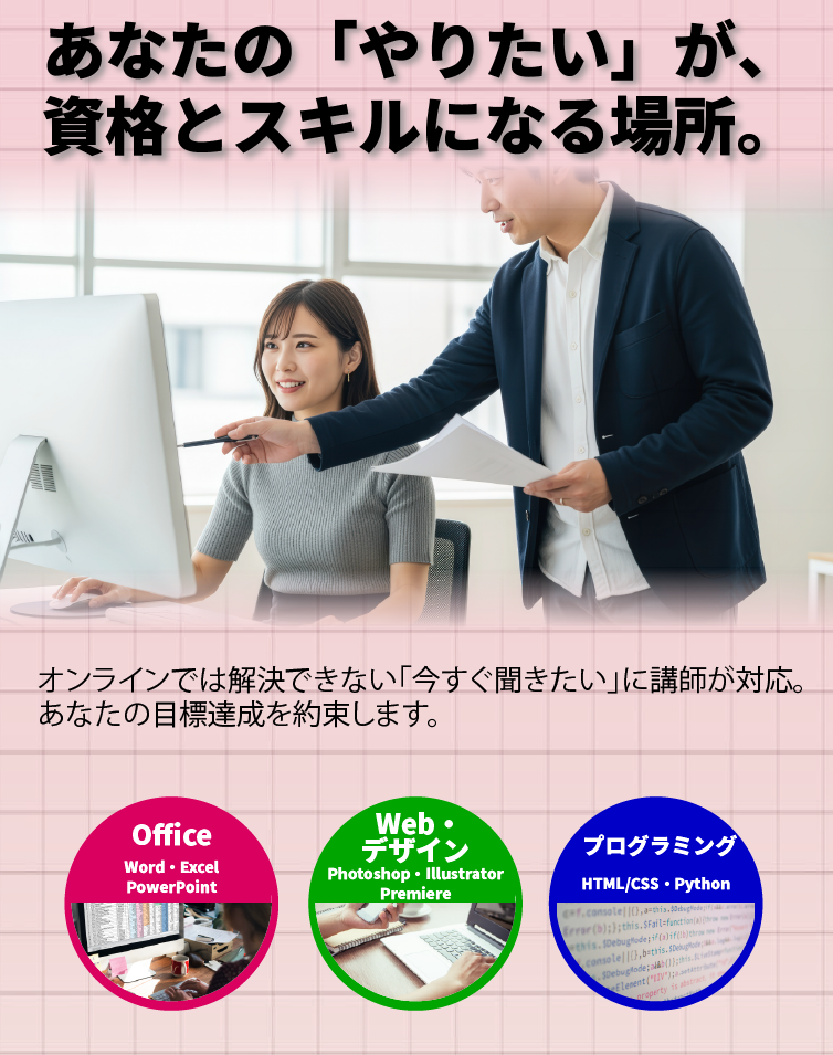 もしパソコンの操作でお困りなら、まずは無料体験へお越しください。