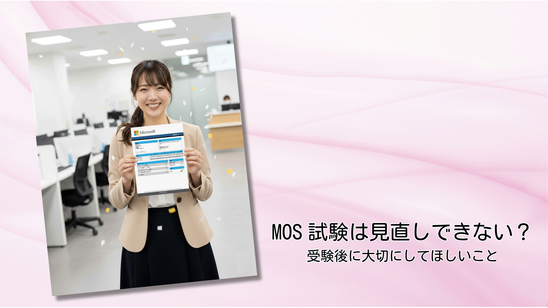 MOSに合格すると、ほっとします。